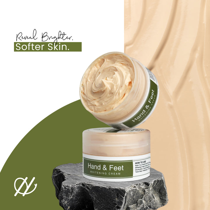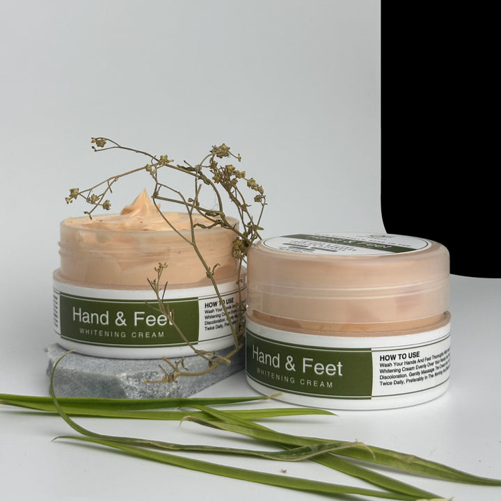 Say goodbye to dull, dark, and rough hands and feet! Our Hand & Feet Whitening Cream is specially formulated to brighten, soften, and deeply nourish your skin—giving you that fresh, glowing look you deserve. Packed with skin-loving ingredients and powerful brightening agents, it works to fade dark spots, even out skin tone, and restore lost moisture for soft, visibly fairer skin.